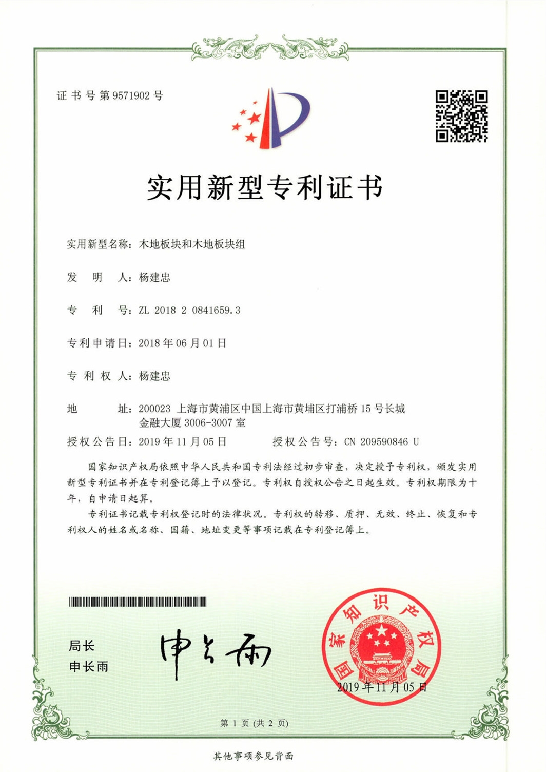 專利證書
